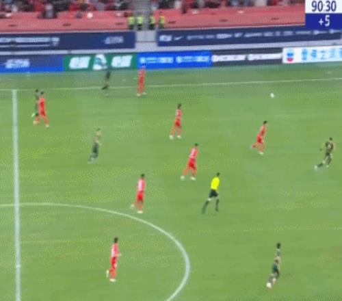 而在伤停补时阶段,越踢越自信的吾米提江再次上演精彩过人。这次是他在后场右路抢断后,面对浙江队近来状态火爆的巴西外援卡列洛,他再次用2个急停变向,成功戏耍对手,卡列洛一度从身后拉都没拉住,足以看出吾米提江细腻的脚下技术和出色的灵活度。