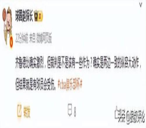 媒体人“球圈赵探长”发文点评:齐鲁德比确实激烈,但裁判是不是该有一些作为?确实是两边一致的纵容大动作,但结果就是有球员会受伤。