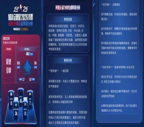 阿里云 AI 并不是简单地把球员数据罗列出来,而是把我选定的这套阵容,当成一个整体结构来处理。它会同时考虑球员之间的空间关系、球权分布、防守协同,以及在不同比赛节奏下,这些变量如何相互影响。