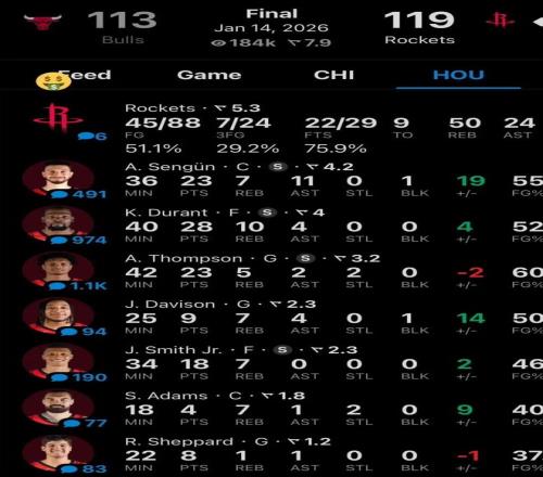 最终火箭以119-113击败公牛止住颓势