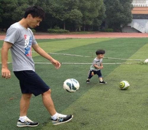 △陈真早年间陪儿子陈睿泽踢球。受访者供图