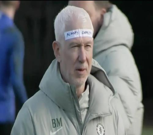 这啥造型啊切尔西理疗师额头贴纸条前往训练场督训 -