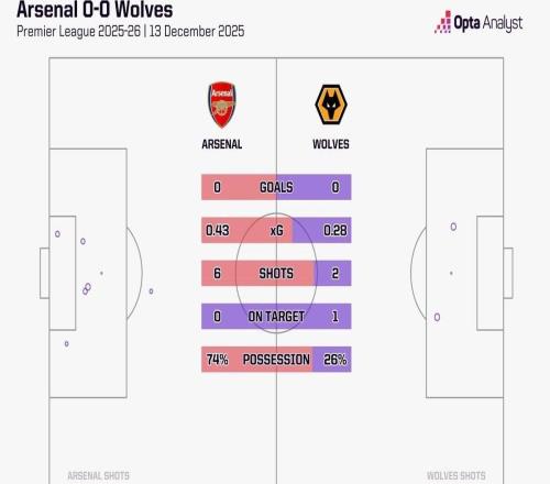 6次射门无一命中目标,阿森纳本赛季英超首次遭遇上半场0射正 -